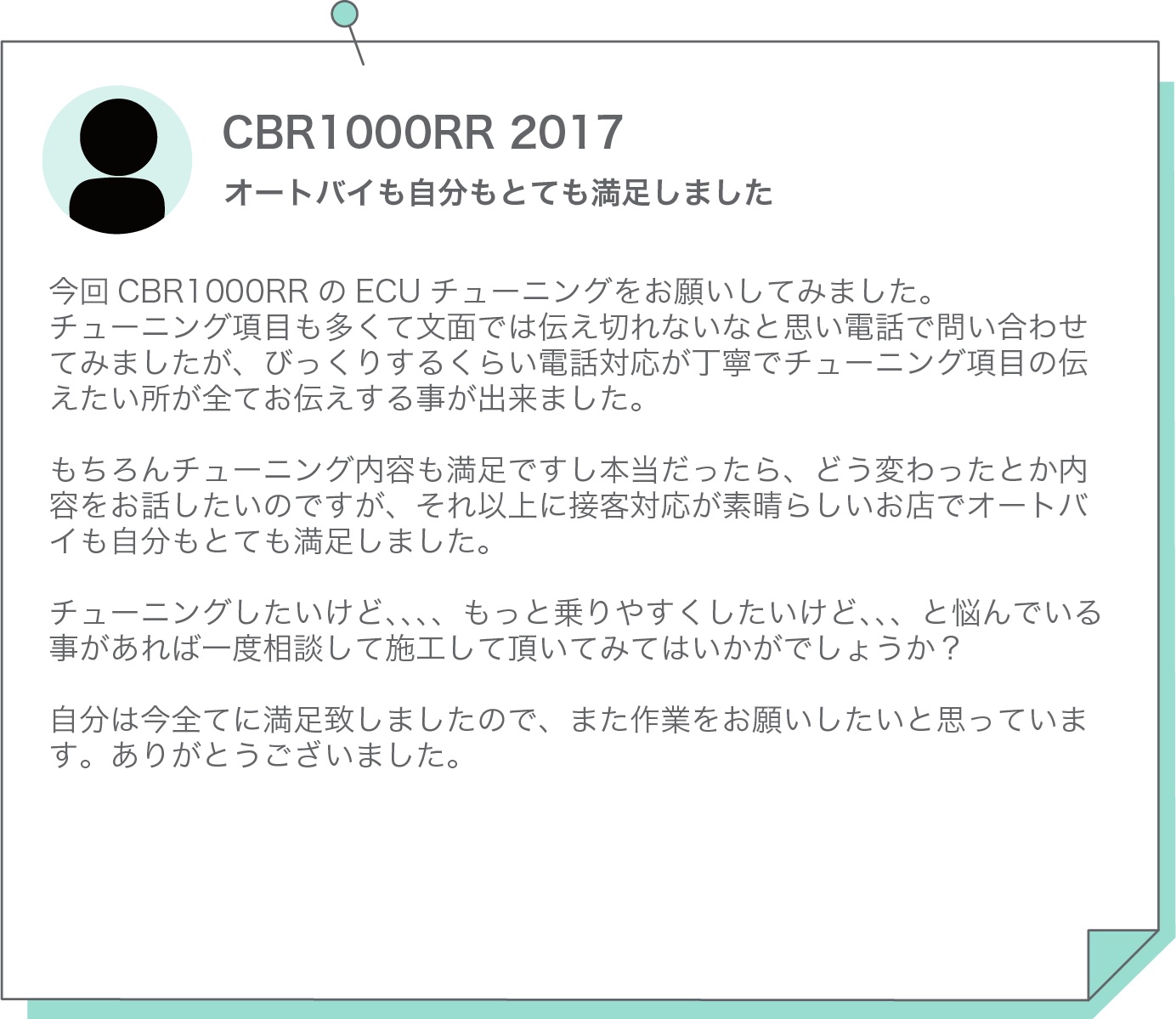 • オートバイも自分もとても満足しました